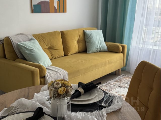 Комната: раскладывающийся диван, вместительный шкаф купе (З м), кресло-качалка, кофейный стол, тумба, телевизор Samsung 55, на окнах ролл-шторы и дополнительно тюль и шторы блэкаут